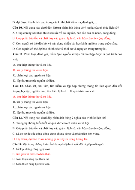 Câu 13. Nội dung nào dưới đây phản ánh đúng ý nghĩa của tri thức lịch sử?