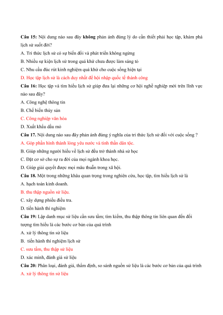 Câu 18. Một trong những khâu quan trọng trong nghiên cứu, học tập, tìm hiểu lịch sử là A. hạch toán kinh doanh.
