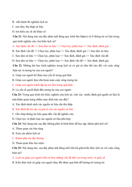 Câu 20: Phân loại, đánh giá, thẩm định, so sánh nguồn sử liệu là các bước cơ bản của quá trình