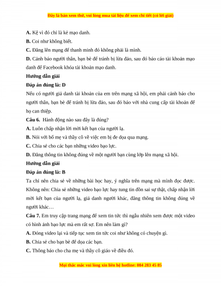Câu 7. Em truy cập trang mạng để xem tin tức thì ngẫu nhiên xem được một video