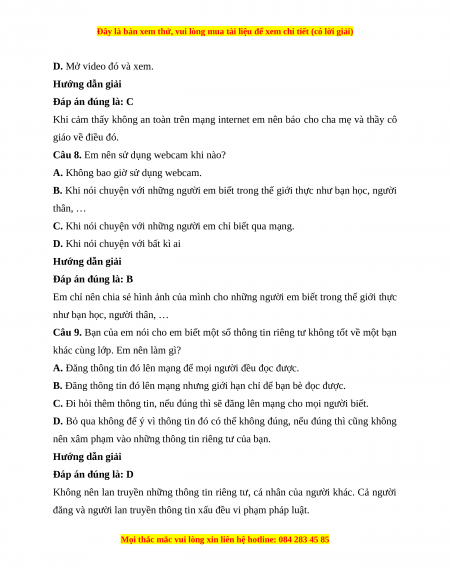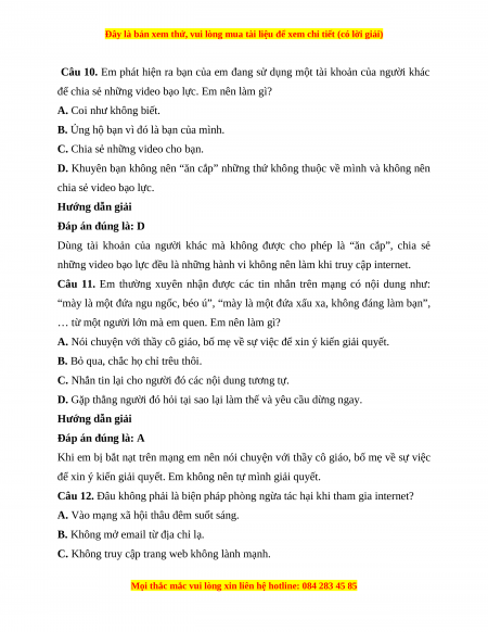 Câu 9. Bạn của em nói cho em biết một số thông tin riêng tư không tốt về một bạn