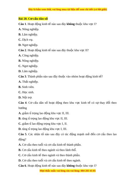 Đây là bản xem th , vu ử i lòng mua tài li u ệ đ xe ể m chi ti t ế (có l i ờ gi i ả ) Bài 20. Cơ c u dân s ấ ố Câu 1. Ho t ạ đ ng