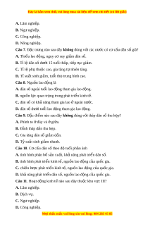 C. dân số có kh năng t ả ham gia lao ngoài ở nư c. ớ D. dân số dư i ớ tu i ổ lao đ ng t ộ ham gia lao đ ng. ộ Câu 9. Đặc đi m