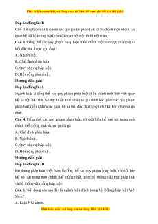 Đây là bản xem th , vu ử i lòng mua tài li u ệ đ xe ể m chi ti t (c ế ó l i ờ gi i ả ) Đáp án đúng là: B Chế đ nh ị pháp lu t ậ là nhóm các quy ph m ạ pháp lu t ậ đi u ề ch nh ỉ m t ộ nhóm các quan hệ xã h i ộ cùng lo i ạ có mối quan h m ệ t ậ thi t ế v i ớ nhau.