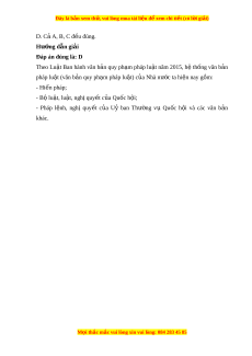 Câu 9. Văn b n pháp l ả u t ậ các c quan ơ nào ban hành? A. Quốc h i ộ . B. Nhà nư c. ớ C. Chính ph . ủ D. Chủ tịch nư c. ớ Hư ng d ớ ẫn gi i ả Đáp án đúng là: B Văn b n ả pháp lu t ậ là văn b n