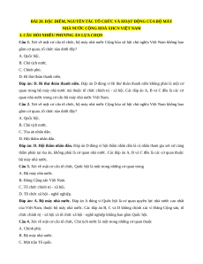 Câu 1. Xét về mặt cơ cấu tổ chức, bộ máy nhà nước Cộng hòa xã hội chủ nghĩa Việt Nam không bao