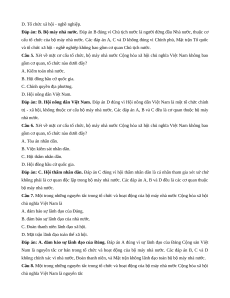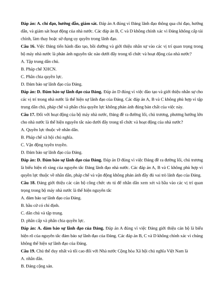 Câu 15. Đảng lãnh đạo bộ máy nhà nước thông qua việc Đảng