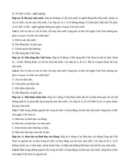 Câu 8. Một trong những nguyên tắc trong tổ chức và hoạt động của bộ máy nhà nước Cộng hòa xã hội
