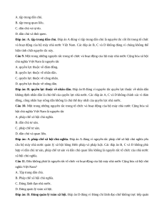 Câu 11. Đâu không phải là nguyên tắc tổ chức và hoạt động của bộ máy nhà nước Cộng hòa xã hội chủ nghĩa Việt Nam? A. Tập trung dân chủ.