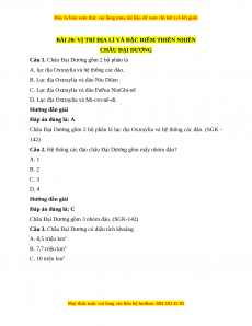 BÀI 20: VỊ TRÍ ĐỊA LÍ VÀ ĐẶC ĐIỂM THIÊN NHIÊN CHÂU ĐẠI DƯƠNG