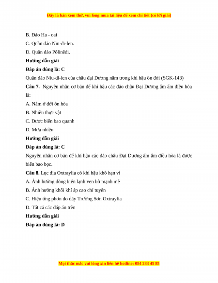 Câu 7. Nguyên nhân cơ bản để khí hậu các đảo châu Đại Dương ấm ẩm điều hòa