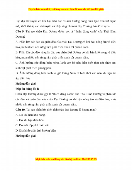 Câu 10. Tại sao phần lớn diện tích châu Đại Dương là hoang mạc? A. Do khí hậu khô nóng. B. Do khí hậu điều hòa