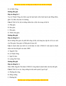 Câu 5. Danh nhân nào thời Lê sơ đã được tổ chức UNESCO vinh danh là Danh