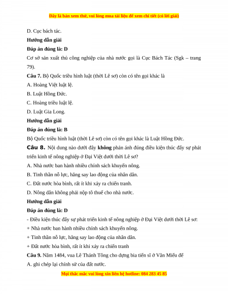 Câu 7. Bộ Quốc triều hình luật (thời Lê sơ) còn có tên gọi khác là A. Hoàng Việt luật lệ. B. Luật Hồng Đức. C. Hoàng triều luật lệ. D. Luật Gia Long. Hướng dẫn giải Đáp án đúng là: B