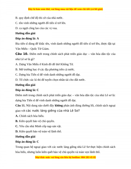 Câu 10. Điểm mới trong chính sách phát triển giáo dục – văn hóa dân tộc của nhà Lê sơ là gì?