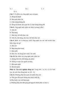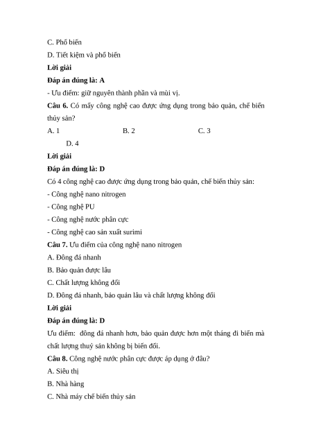 Câu 6. Có mấy công nghệ cao được ứng dụng trong bảo quản, chế biến thủy sản? A. 1 B. 2 C. 3 D. 4
