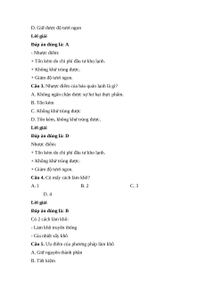 Câu 4. Có mấy cách làm khô? A. 1 B. 2 C. 3 D. 4 Lời giải Đáp án đúng là: B Có 2 cách làm khô: - Làm khô truyền thống - Gia nhiệt sấy khô