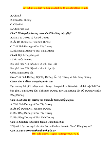 Đây là bản xem th , vu ử i lòng mua tài li u ệ đ xe ể m chi ti t (c ế ó l i ờ gi i ả ) A. Châu Á B. Châu Đ i ạ Dư ng ơ C. Châu Phi D. Châu Nam C c ự