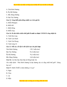 ợ UNESCO công nh n l ậ à: A. Vịnh Hạ Long B. Vịnh Cam Ranh C. Vịnh Vân Phong D. Vịnh Lăng Cô Câu 15. N i