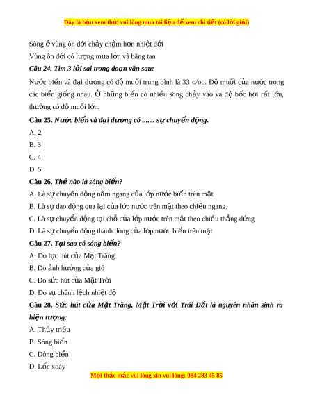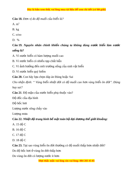 Đây là bản xem th , vu ử i lòng mua tài li u ệ đ xe ể m chi ti t (c ế ó l i ờ gi i ả ) Câu 18. Đ n ơ v đo đ ị m ộ u i ố c a ủ bi n l ể à? A. m3 B. kg C. o/oo D. %