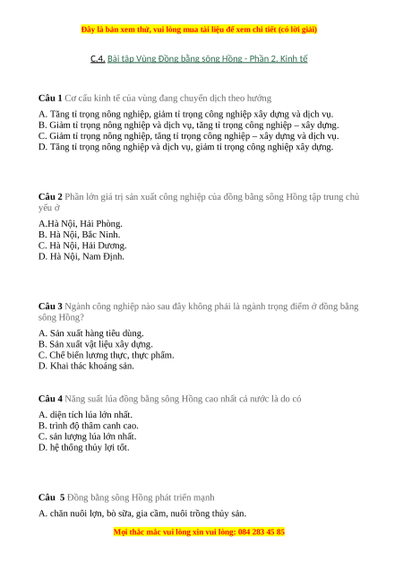 C.4. Bài tập Vùng Đồng bằng sông Hồng - Phần 2. Kinh tế