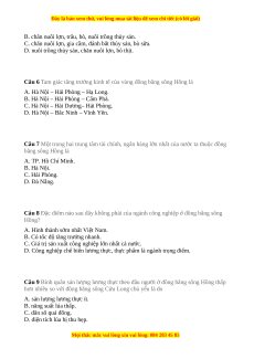 Câu 7 Một trong hai trung tâm tài chính, ngân hàng lớn nhất của nước ta thuộc đồng bằng sông Hồng là A. TP. Hồ Chí Minh. B. Hà Nội. C. Hải Phòng. D. Đà Nẵng.