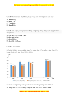 Câu 9 Bình quân sản lượng lương thực theo đầu người ở đồng bằng sông Hồng thấp