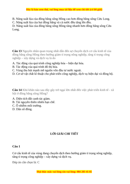 Đây là bản xem thử, vui lòng mua tài liệu để xem chi tiết (có lời giải)