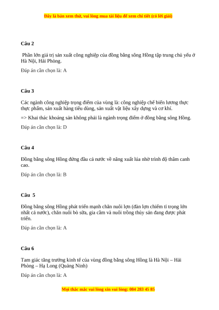Câu 2 Phần lớn giá trị sản xuất công nghiệp của đồng bằng sông Hồng tập trung chủ yếu ở A.Hà Nội, Hải Phòng. B. Hà Nội, Bắc Ninh. C. Hà Nội, Hải Dương. D. Hà Nội, Nam Định.