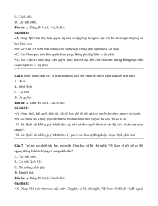 Câu 7: Chủ thể nào dưới đây thay mặt nước Cộng hoà xã hội chủ nghĩa Việt Nam về đối nội và đối