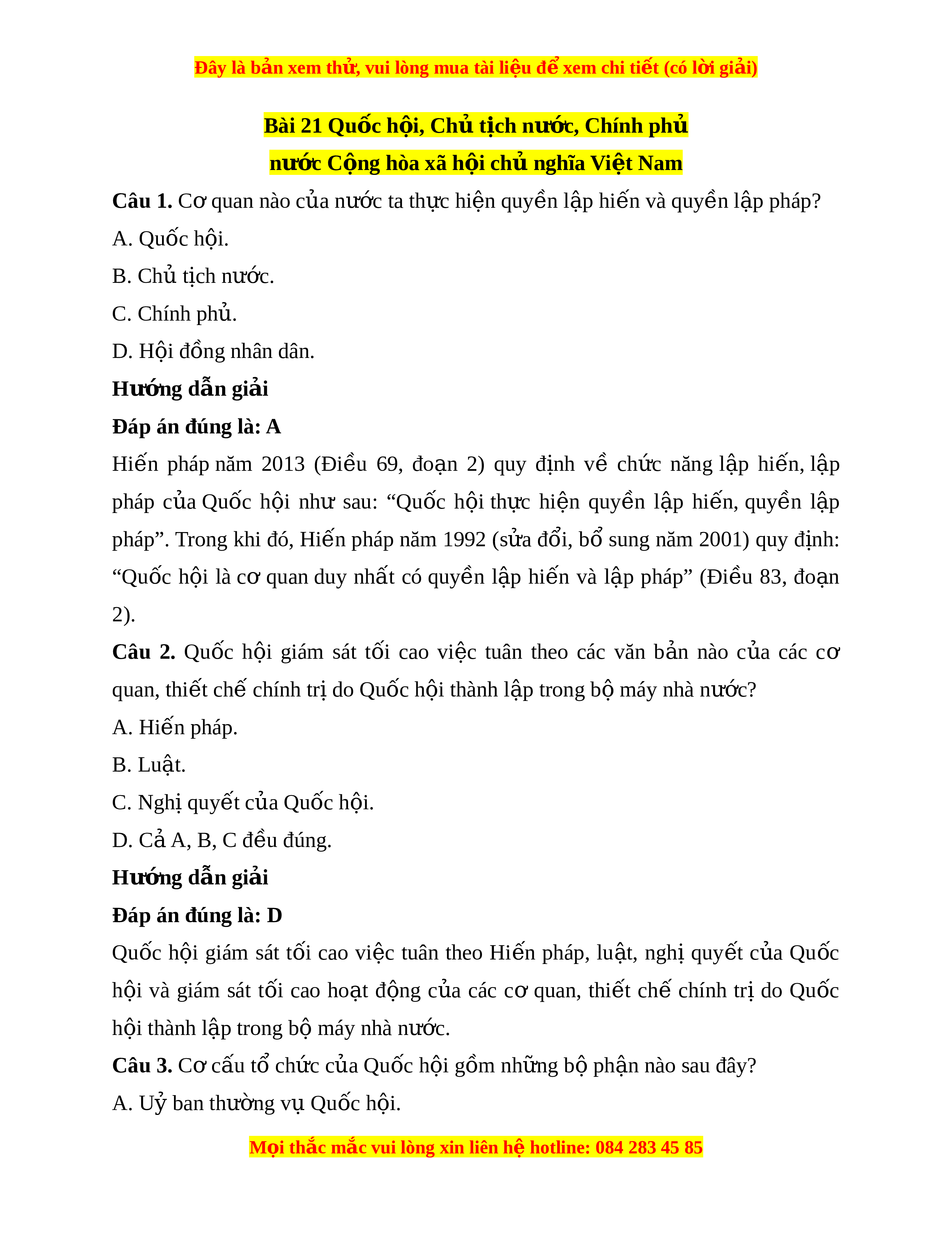 Đây là bản xem th , vu ử i lòng mua tài li u ệ đ xe ể m chi ti t (c ế ó l i ờ gi i ả ) Bài 21 Qu c h ố i ộ , Ch t ủ ch n ị ư c, C ớ hính phủ nư c ớ C ng hòa xã h ộ i ộ ch nghĩ ủ a Vi t ệ Nam