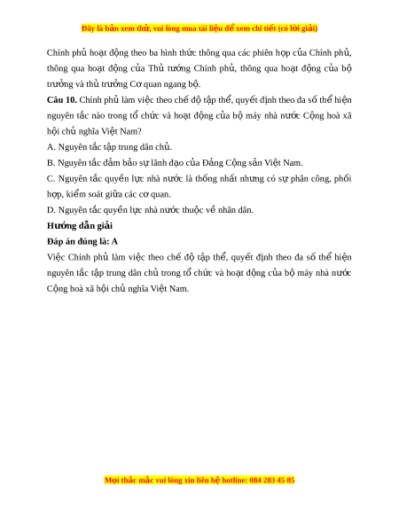 Câu 10. Chính ph làm vi c theo ch đ t p th , quy t đ nh theo đa s th hi nủ ệ ế ộ ậ ể ế ị ố ể ệ