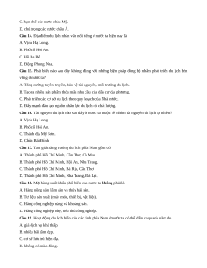 Câu 6. Trung tâm du lịch quốc gia ở nước ta hiện nay không phải là A. Hà Nội. B. Huế. C. Đà Nẵng. D. Cần Thơ.