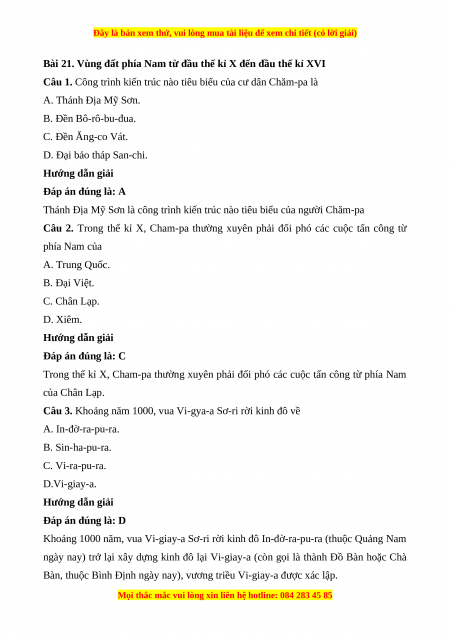 Trắc nghiệm Bài 21: Vùng đất phía Nam từ đầu thế kỉ X đến đầu thế kỉ XVI