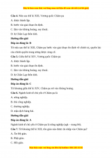 Câu 4. Nửa sau thế kỉ XIII, Vương quốc Chăm-pa A. được thành lập.