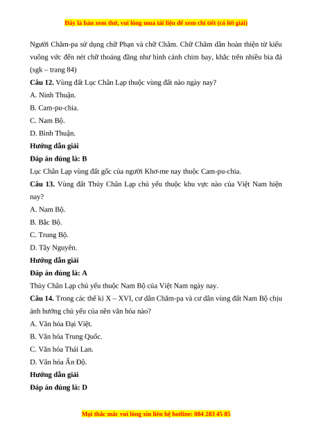 Câu 12. Vùng đất Lục Chân Lạp thuộc vùng đất nào ngày nay? A. Ninh Thuận. B. Cam-pu-chia. C. Nam Bộ. D. Bình Thuận. Hướng dẫn giải Đáp án đúng là: B