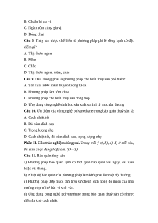 Câu 8. Thủy sản được chế biến từ phương pháp phi lê đông lạnh có đặc điểm gì? A. Thịt thơm ngon B. Mềm C. Chắc