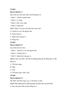 Câu 6. Bước 1 của quy trình sản xuất nước mắm truyền thống từ cá là: A. Chuẩn bị nguyên liệu B. Ủ chượp C. Rút và lọc mắm D. Đóng chai