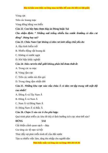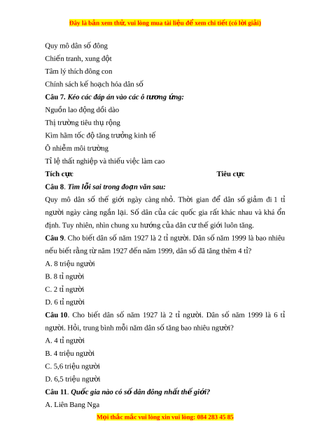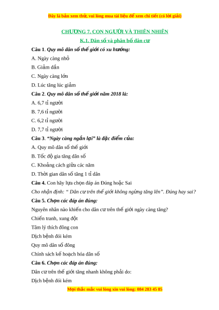 Đây là bản xem th , vu ử i lòng mua tài li u ệ đ xe ể m chi ti t ế (có l i ờ gi i ả ) CHƯ N Ơ G 7. CON NGƯ I Ờ VÀ THIÊN NHIÊN K .1. D ân s và phân b ố dân c ố ư