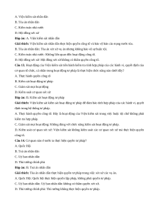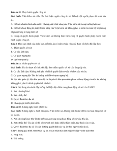 Câu 1. Tòa án nhân dân là cơ quan xét xử của nước Cộng hòa xã hội chủ nghĩa Việt Nam và thực hiện quyền A. Tư pháp B. Lập pháp C. Lập hiến D. Công tố Đáp án: A. Tư pháp