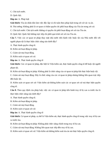 Giải thích: Các cơ quan tư pháp, đặc biệt là Viện kiểm sát, thực hành quyền công tố để buộc tội người phạm tội.