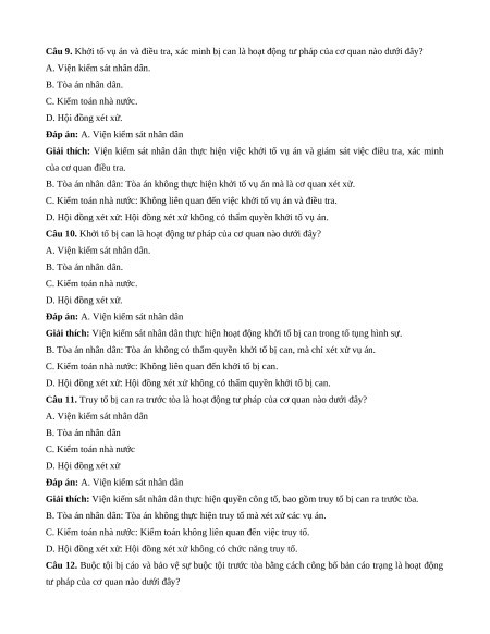 Câu 11. Truy tố bị can ra trước tòa là hoạt động tư pháp của cơ quan nào dưới đây?