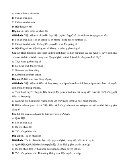B. Kiểm tra hoạt động tư pháp. C. Hành pháp. D. Tư pháp Đáp án: D. Tư pháp