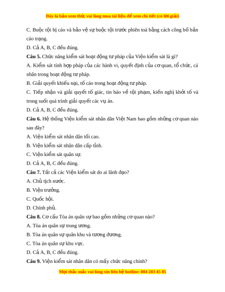 C. Tòa án quân sự khu v c. ự D. C ả A, B, C đ u ề đúng. Câu 9. Viện ki m
