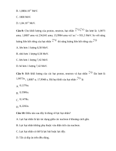 Câu 8: Cho khối lượng của proton, neutron, hạt nhân lần lượt là: 1,0073
