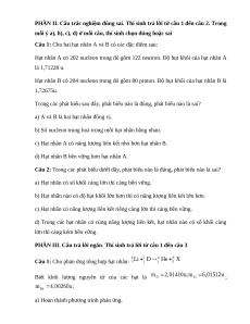 PHẦN I. Câu trắc nghiệm nhiều phương án lựa chọn. Thí sinh trả lời từ câu 1