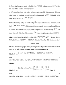 Câu 1: Cho phản ứng tổng hợp hạt nhân: