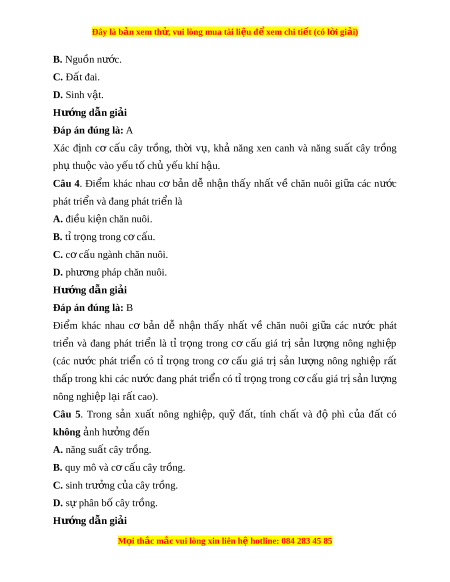 Đây là bản xem th , vu ử i lòng mua tài li u ệ đ xe ể m chi ti t (c ế ó l i ờ gi i ả ) B. Nguồn nư c. ớ C. Đất đai. D. Sinh v t ậ . Hư ng d ớ ẫn gi i ả Đáp án đúng là: A Xác đ nh ị cơ c u ấ cây tr ng, ồ th i ờ v ,