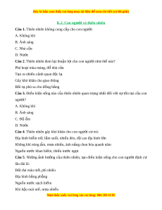 Gây khó khăn cho giao thông Bồi t phù s ụ a cho đồng b ng ằ Câu 3. Đi u ki ề ện sống nào c a t ủ hiên nhiên quan tr ng nh ọ t ấ đ i ố v i ớ s t ự n t ồ i ạ c a ủ con ngư i ờ ? A. Không khí B. Ánh sáng C. Đ ộ ẩm D. Nư c ớ