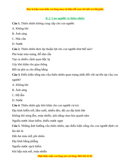 Đây là bản xem th , vu ử i lòng mua tài li u ệ đ xe ể m chi ti t (c ế ó l i ờ gi i ả ) K .2. C on ngư i ờ và thiên nhiên